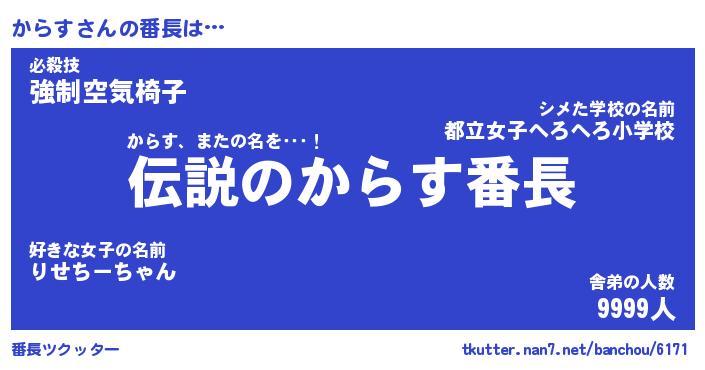| ヒーロー風カッコイイあだ名 | 『スーパーカラス』『ウルトラからすマン』 |