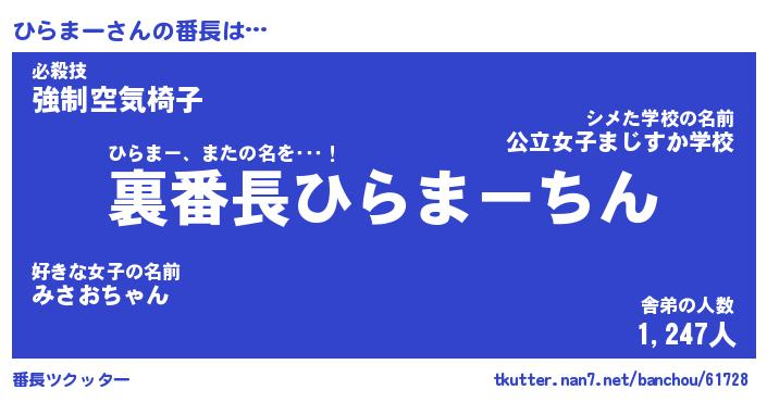| ヒーロー風カッコイイあだ名 | 『スーパーヒラマー』『銀牙騎士ヒラ』 |
