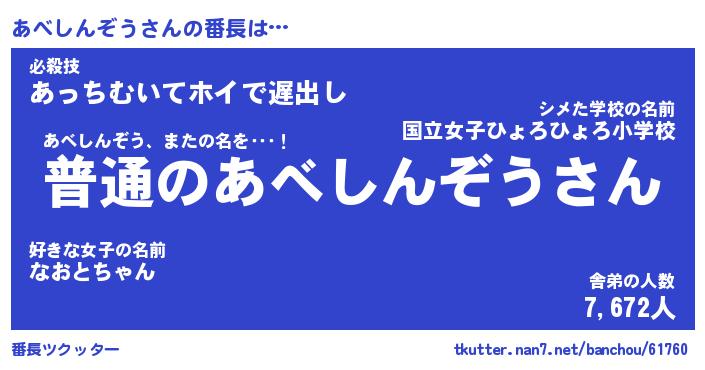 | 肩書あだ名 | 『あべしんぞう社長』『あべしんぞう団長』 |
