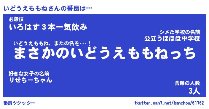 | ヒーロー風カッコイイあだ名 | 『スーパーイドウエモモネ』 |