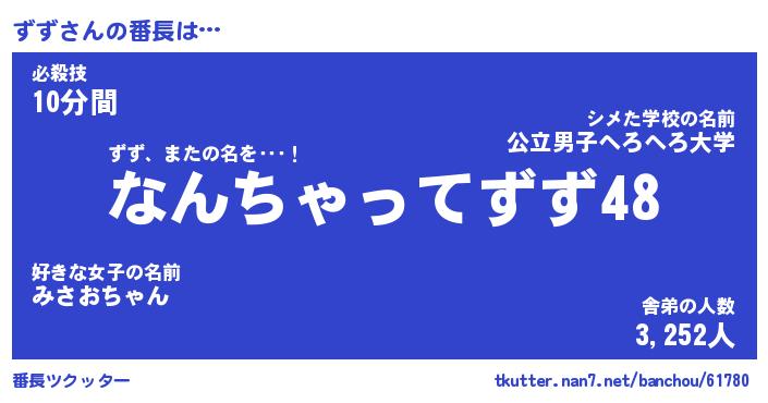 | ヒーロー風カッコイイあだ名 | 『スーパーズズ』『ウルトラずずマン』 |