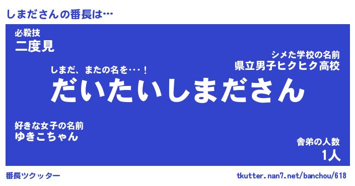 | 2回繰り返すあだ名 | 『しましま』『ししまま』『あんあん』 |