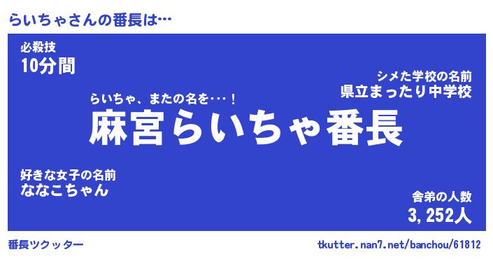 | ヘコむあだ名 | 『らいにゅー』『牛乳』『らい太郎』 |