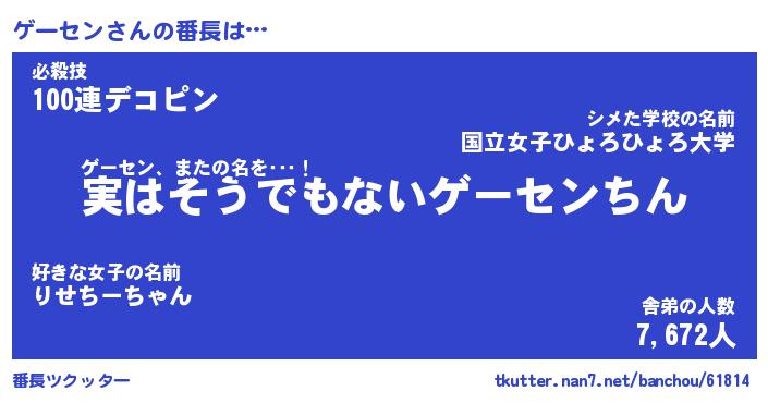 | ヘコむあだ名 | 『ゲーふぇ~』『つくし』『ゲーを』 |