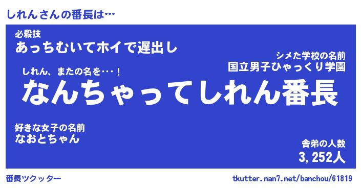 | 意味不明あだ名 | 『ペロリンしれん』『しれんフォーエバー』 |