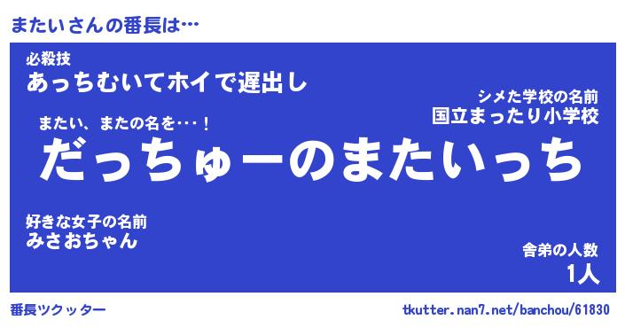 | ピコ太郎風あだ名 | 『マコ二郎』『ピマ一郎』『マタ史郎』 |