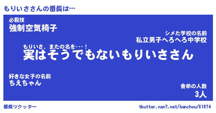 | 意味不明あだ名 | 『ペロリンもりいさ』『永久保存もりいさ』 |