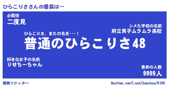 | ヘコむあだ名 | 『ひらにゅー』『なまこ酢』 |