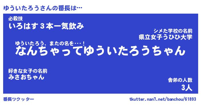 | ヘコむあだ名 | 『ゆうにゅー』『牛乳』『ゆう太郎』 |