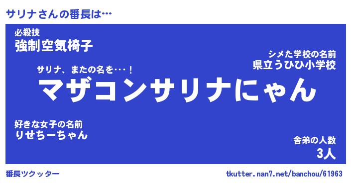 | ヒーロー風カッコイイあだ名 | 『スーパーサリナ』『ウルトラサリナマン』 |