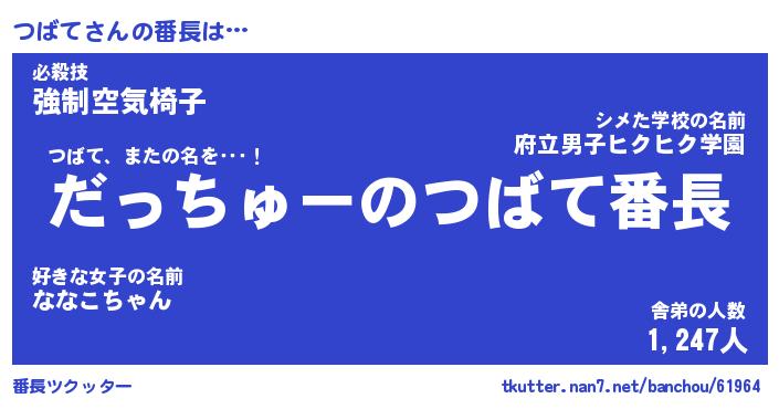 | ヒーロー風カッコイイあだ名 | 『スーパーツバテ』『ウルトラつばてマン』 |
