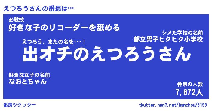| 意味不明あだ名 | 『ペロリンえつろう』『永久保存えつろう』 |