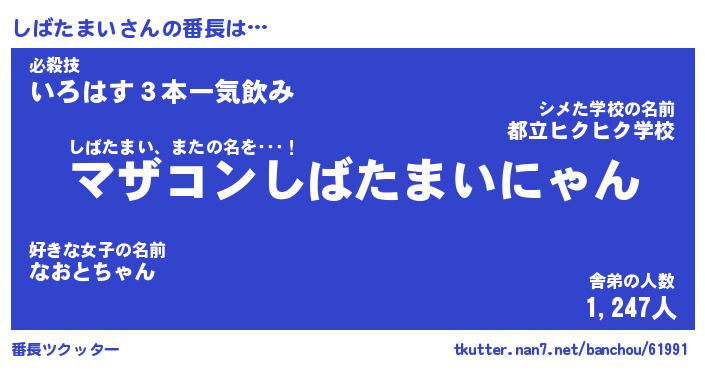 | 肩書あだ名 | 『しばたまい店長』『しばたまい国家主席』 |