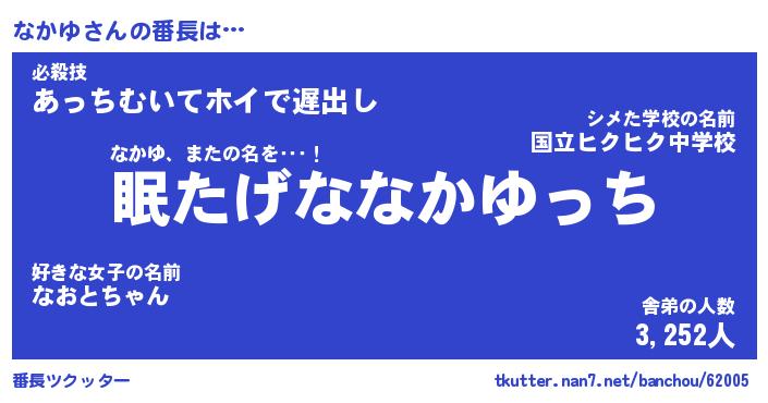 | 伝説のあだ名 | 『封印されしスナイパーなかゆ』 |