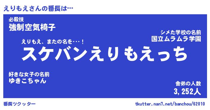 | 2回繰り返すあだ名 | 『えりえり』『ええりり』『ぬぷぬぷ』 |