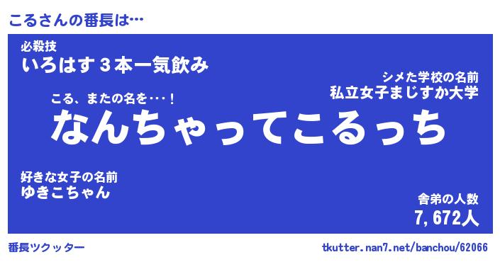 | ヘコむあだ名 | 『こるにゅー』『酢こんぶ』 |