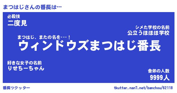 | 伝説のあだ名 | 『伝説のスナイパーまつはじ』 |