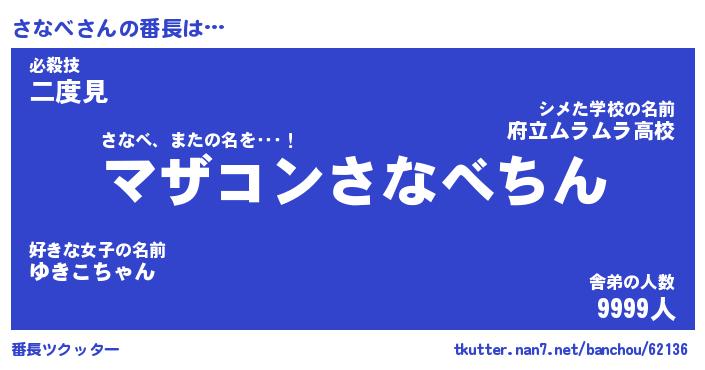 | ピコ太郎風あだ名 | 『サコ一郎』『ピサ六郎』『サナ十郎』 |