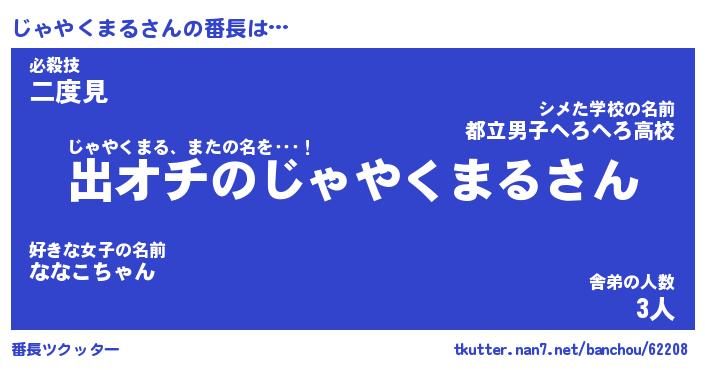 | 2回繰り返すあだ名 | 『じゃじゃ』『じじゃゃ』 |