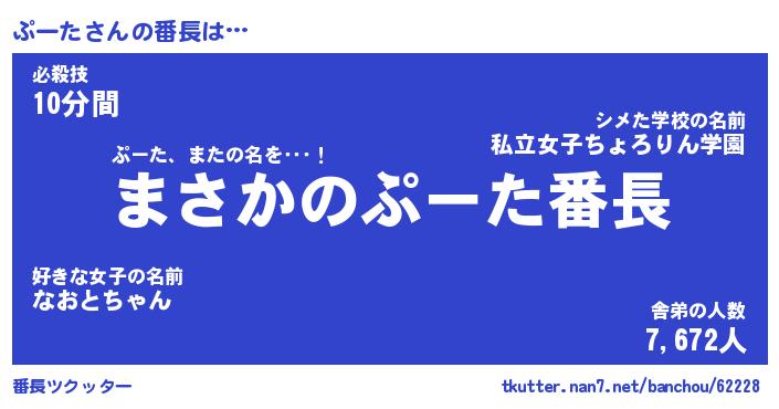 | ヒーロー風カッコイイあだ名 | 『スーパープータ』『ウルトラぷーたマン』 |