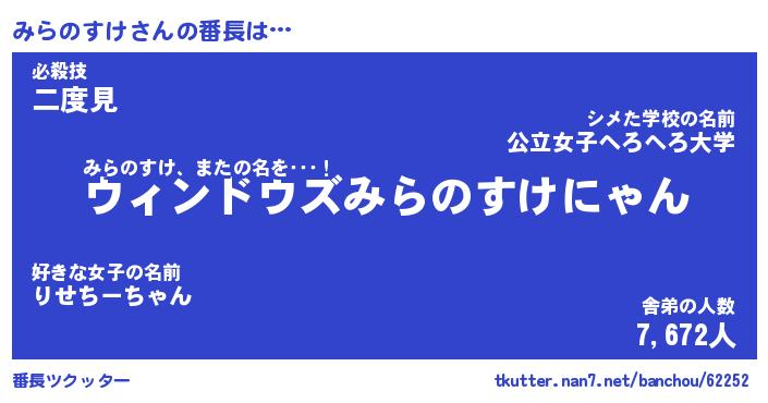 | 2回繰り返すあだ名 | 『みらみら』『みみらら』『ぬらぬら』 |