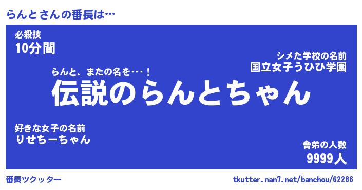 | ヒーロー風カッコイイあだ名 | 『スーパーラント』『ウルトラらんとマン』 |