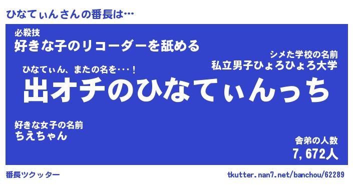 | 2回繰り返すあだ名 | 『ひなひな』『ひひなな』『ぬらぬら』 |