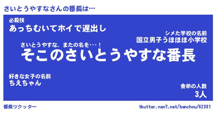| ピコ太郎風あだ名 | 『サコ史郎』『ピサ太郎』『サイ十郎』 |