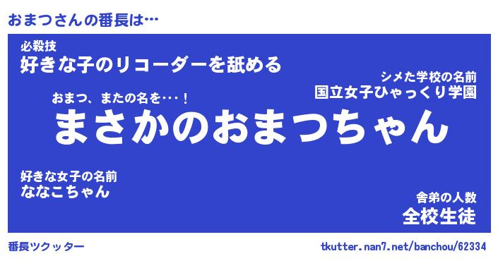 | ポケモン風あだ名 | 『オマチュウ』『オマツダネ』 |