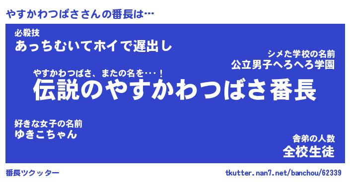 | 伝説のあだ名 | 『伝説のスナイパーやすかわつばさ』 |