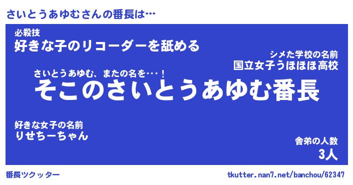 | 肩書あだ名 | 『さいとうあゆむ店長』 |