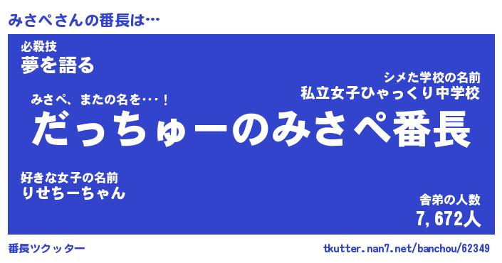 | 伝説のあだ名 | 『伝説のスナイパーみさぺ』 |