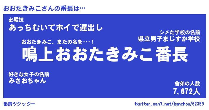 | 男性向けラノベタイトル風あだ名 | 『オオタキミコアートオンライン』 |
