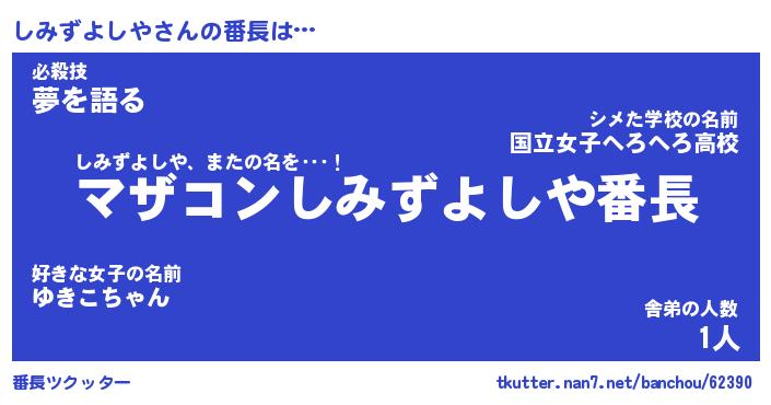| 恥ずかしいあだ名 | 『プリティーしみずよしや』『しみっちょ』 |