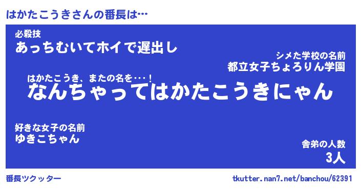 | ヒーロー風カッコイイあだ名 | 『スーパーハカタコウキ』『魔戒騎士ハカ』 |