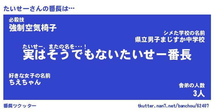 | ポケモン風あだ名 | 『タイチュウ』『タイセダネ』 |
