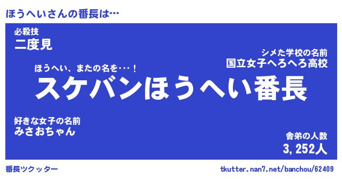 | ヒーロー風カッコイイあだ名 | 『スーパーホウヘイ』『幻影騎士ホウ』 |