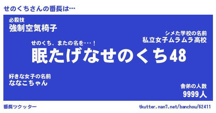 | 伝説のあだ名 | 『封印されしスナイパーせのくち』 |
