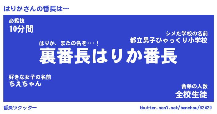 | 肩書あだ名 | 『はりか社長』『はりか総理大臣』 |