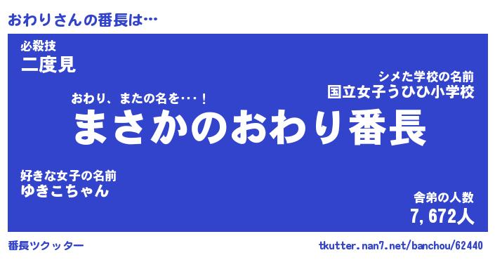 | ポケモン風あだ名 | 『オワチュウ』『オワリダネ』 |