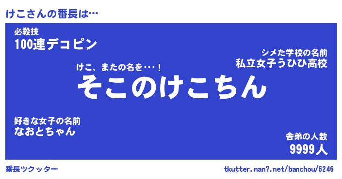 | ヘコむあだ名 | 『けこにゅー』『豆乳』『けこっぺ』 |