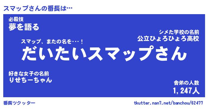 | 意味不明あだ名 | 『ペロリンスマップ』『永久保存スマップ』 |