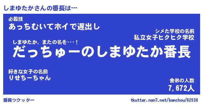 | 女子向けラノベタイトル風あだ名 | 『(仮)しまゆたかのやんごとなき事情』 |