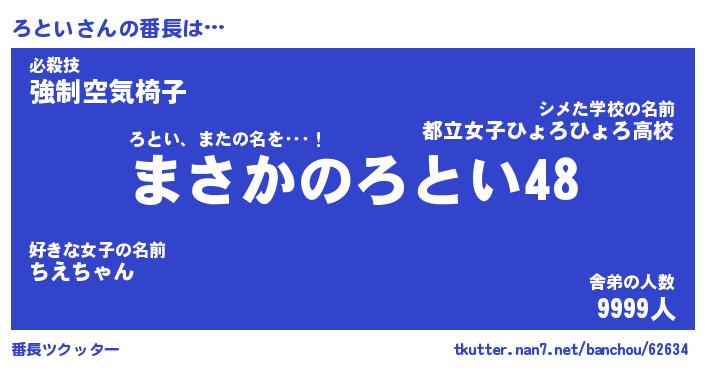 | ヘコむあだ名 | 『ろとにー』『なまこ酢』『ろとお』 |