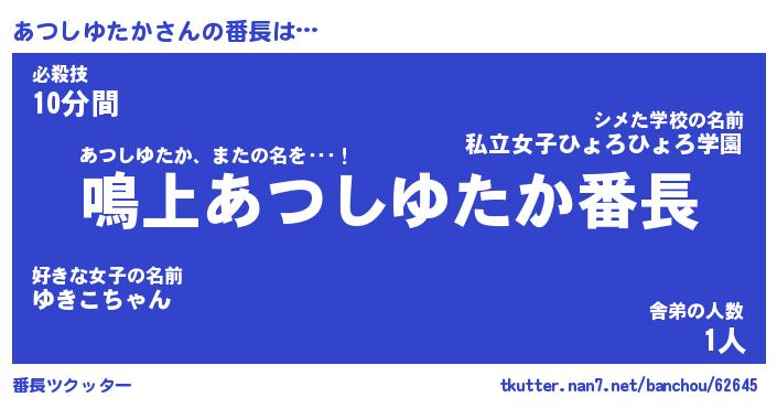 | 男性向けラノベタイトル風あだ名 | 『アツシユタカアートオンライン』 |