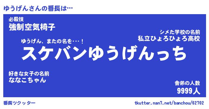 | ファンタジー風あだ名 | 『ユウフェル』『エターナルユウゲンー』 |