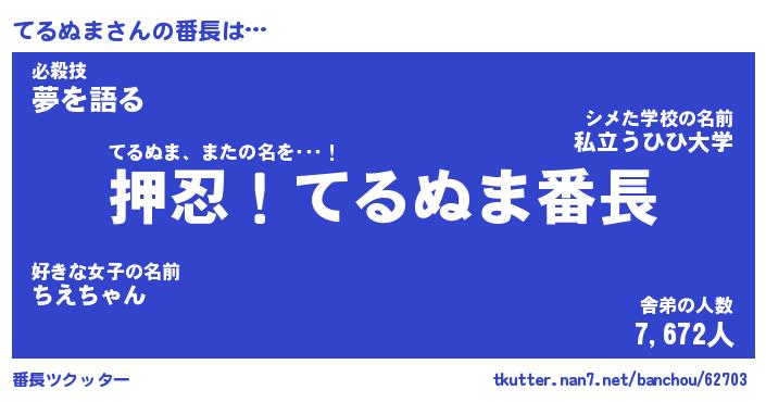 | 意味不明あだ名 | 『ペロリンてるぬま』『永久保存てるぬま』 |