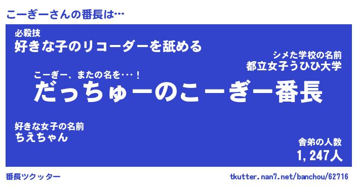 | 伝説のあだ名 | 『伝説のスナイパーこーぎー』 |
