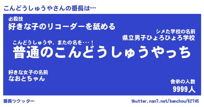 | 意味不明あだ名 | 『ペロリンこんどうしゅうや』 |