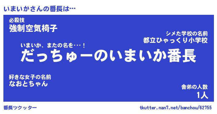 | ヒーロー風カッコイイあだ名 | 『スーパーイマイカ』『暗黒騎士イマ』 |